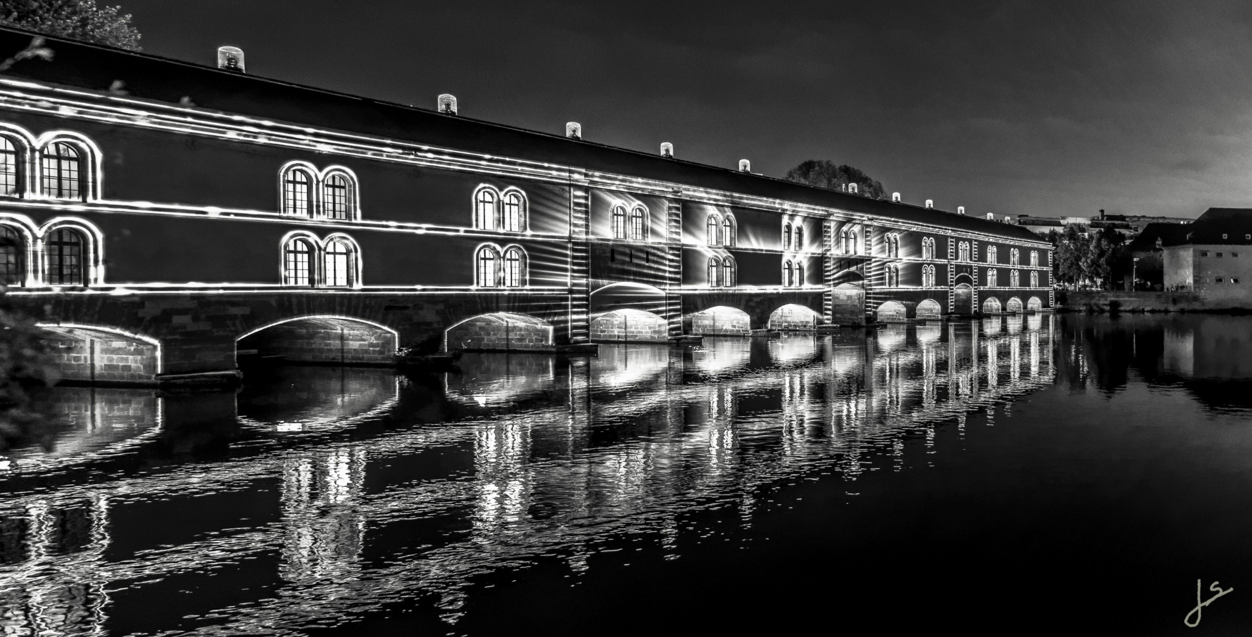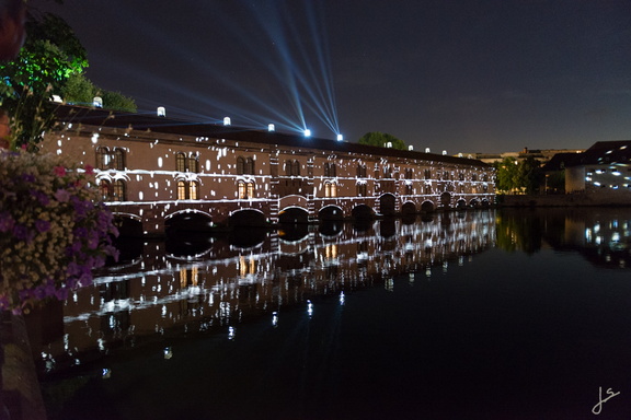 Cette année pour la première fois, le barrage Vauban a été mis à l’honneur avec un spectacle de sons et lumières, sous forme de clins d’œil faits à la Ville de Strasbourg.