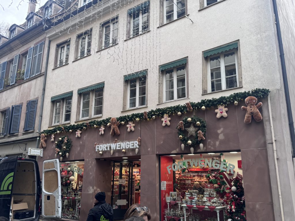 À Strasbourg, capitale de Noël, chaque détail compte. L’objectif était clair : créer une façade immersive, chaleureuse et élégante, capable de capter les regards des passants tout en respectant l’identité traditionnelle de la maison Fortwenger.