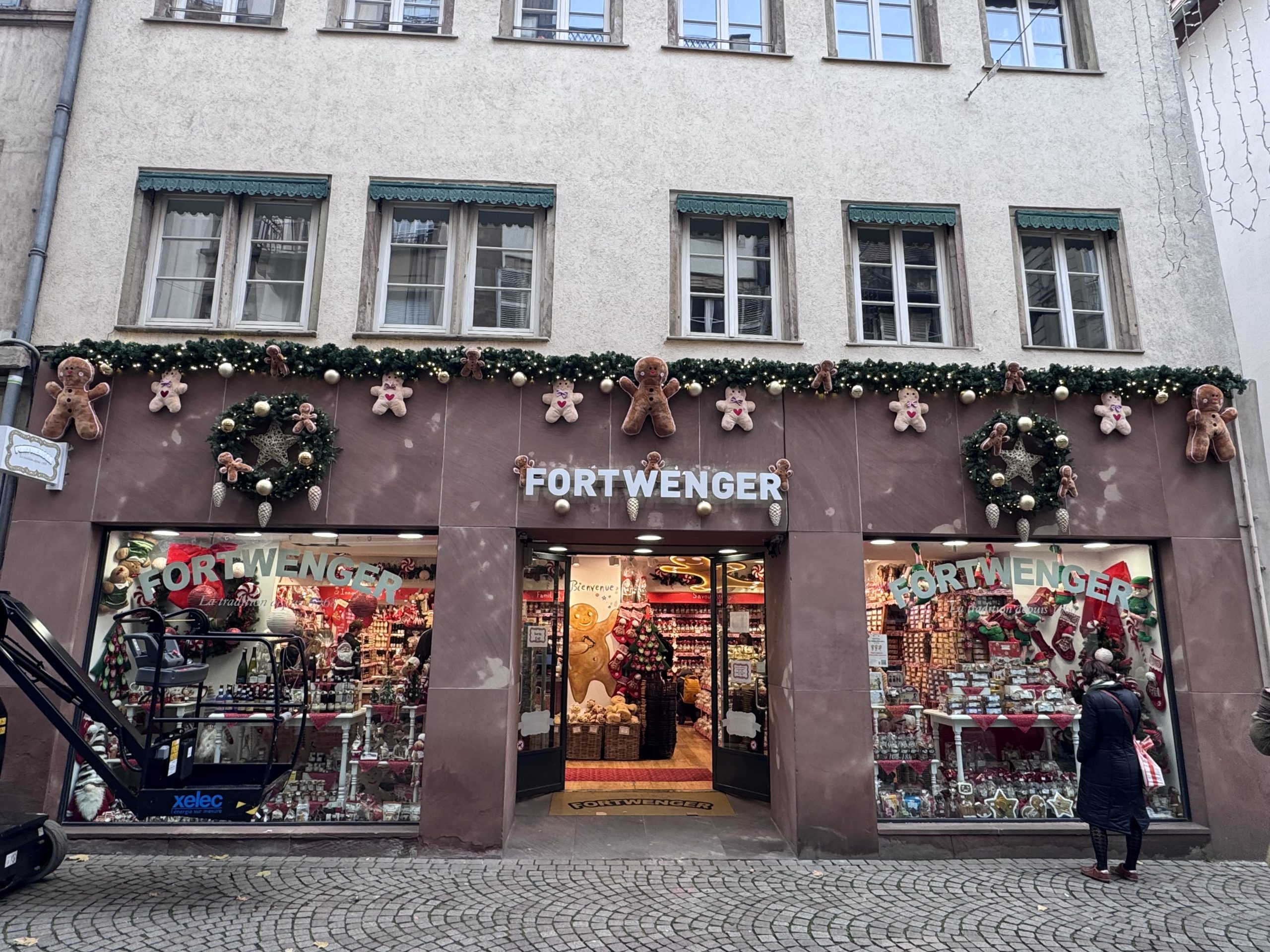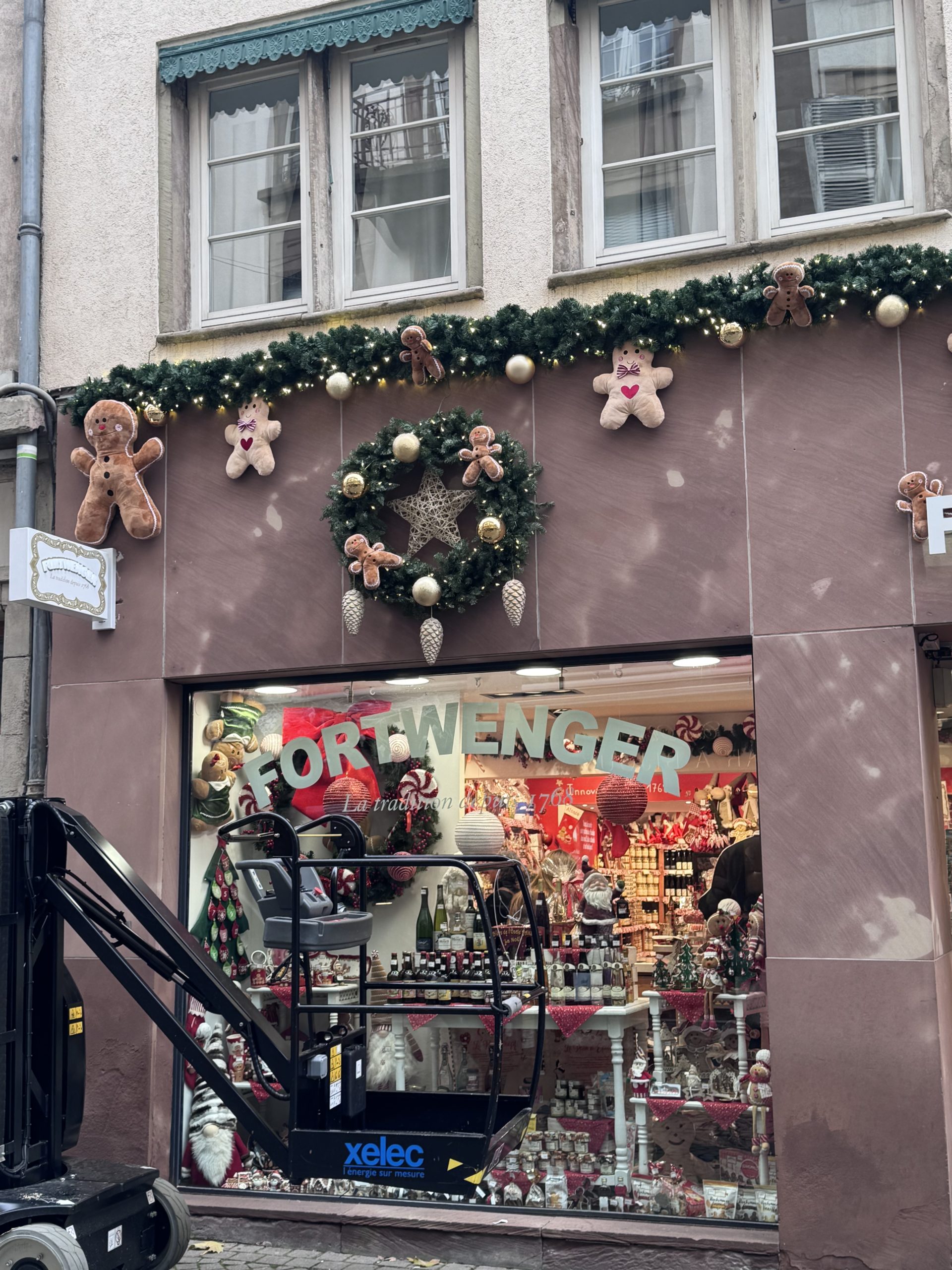 À Strasbourg, capitale de Noël, chaque détail compte. L’objectif était clair : créer une façade immersive, chaleureuse et élégante, capable de capter les regards des passants tout en respectant l’identité traditionnelle de la maison Fortwenger.